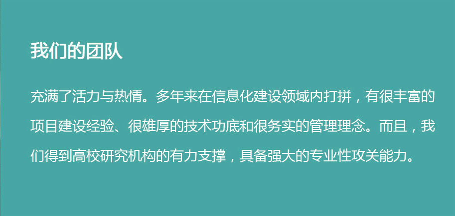 我們長(cháng)期致力于國內政府、企事業(yè)單位的信息化建設,涉及多個(gè)領(lǐng)域與行業(yè),如政府、環(huán)保、交通運輸、城市建設、公路及鐵路建設、規劃、勘察設計等等。結合對國外眾多優(yōu)秀軟件平臺提供商(如Microsoft、IBM、SAP等)的不斷跟蹤、學(xué)習,摸索、挖掘出了一整套完善、成熟、專(zhuān)業(yè)、務(wù)實(shí)的,適應于中國管理現狀的信息化綜合解決方案和應用理念。發(fā)現、積累了適用于不同行業(yè)的信息化建設共性,涵蓋了從信息化建設咨詢(xún)(解決國內某些用戶(hù)對通過(guò)信息化手段輔助管理理解不夠深入的問(wèn)題)、軟件項目生命周期管理(有效解決項目進(jìn)行過(guò)程中各個(gè)環(huán)節信息確認和共享問(wèn)題,保證效率和質(zhì)量),到可定制、可擴展的應用型軟件開(kāi)發(fā)平臺建設(快速搭建、快速開(kāi)發(fā)、快速適應需求的變化)等諸多方面。為信息化建設提供全方位的有力支撐。我們緊跟世界先進(jìn)開(kāi)發(fā)技術(shù),有能力涉足的領(lǐng)域幾乎涵蓋了政府、企事業(yè)單位信息化的方方面面。